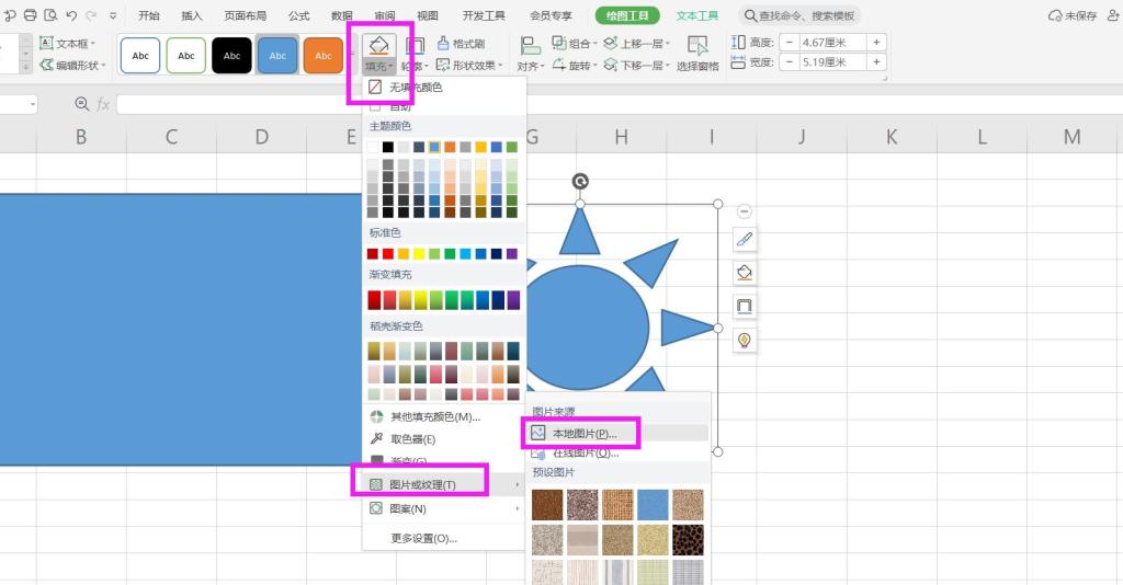 4、再点击填充,选择图片填充并上传一张本地图片。
