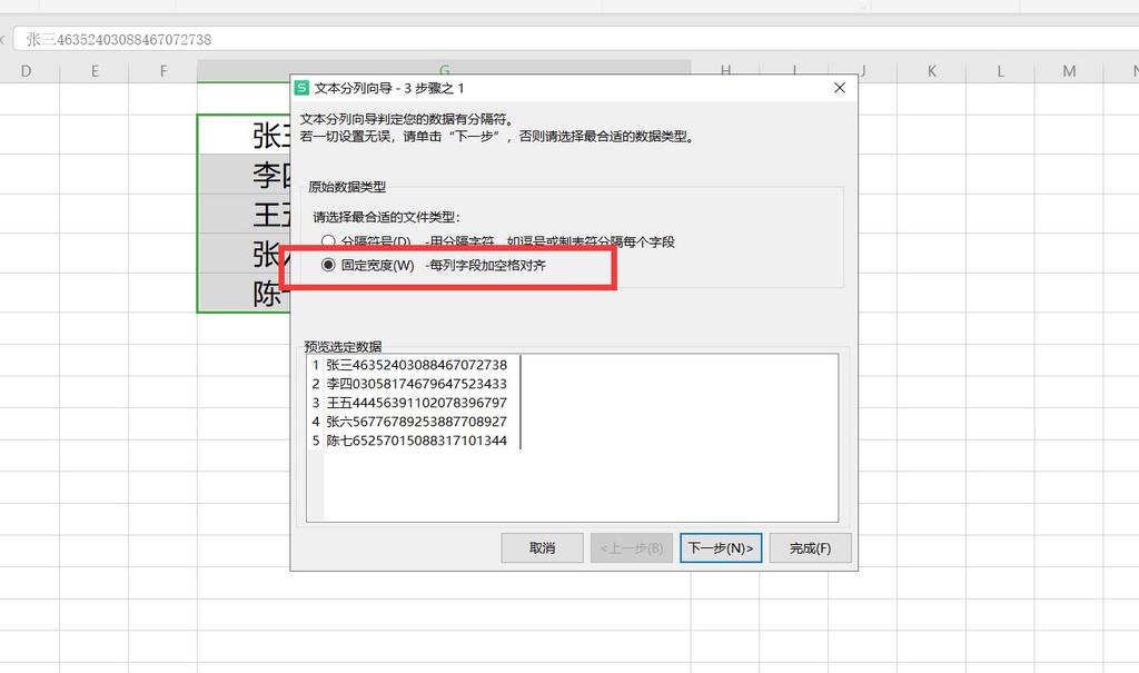 2、在文本分列窗口中,根据需要选择最合适的文件类型,这里就选择“固定宽度”。