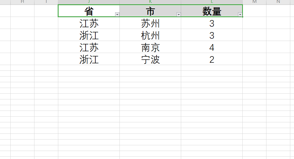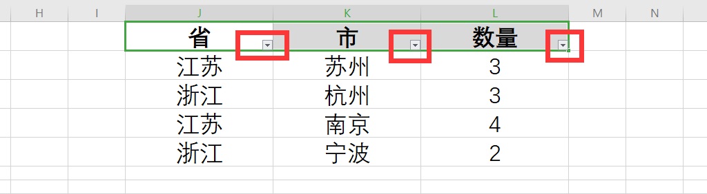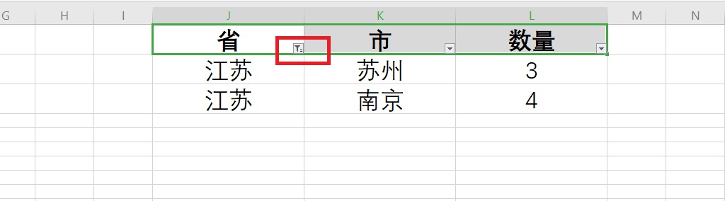 4、然后可以看到表格里只留下了江苏的数据,同时下拉箭头也变成了漏斗状,提示用户在这里有过选择操作。