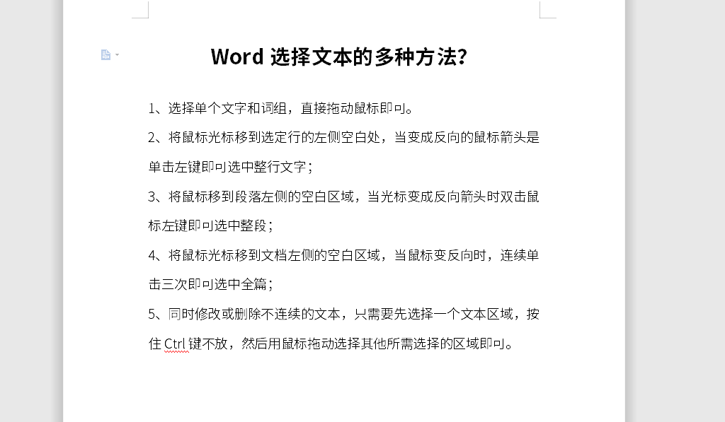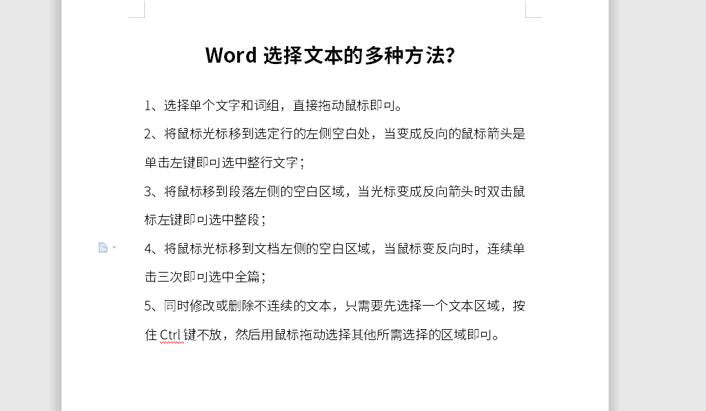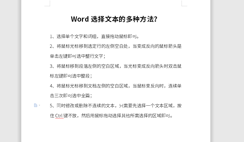 在编辑Word文档时,少不了对文字的选取。那么除了通过鼠标选取连续的文字外,还有什么选取方式呢?下面给大家介绍下具体方法。