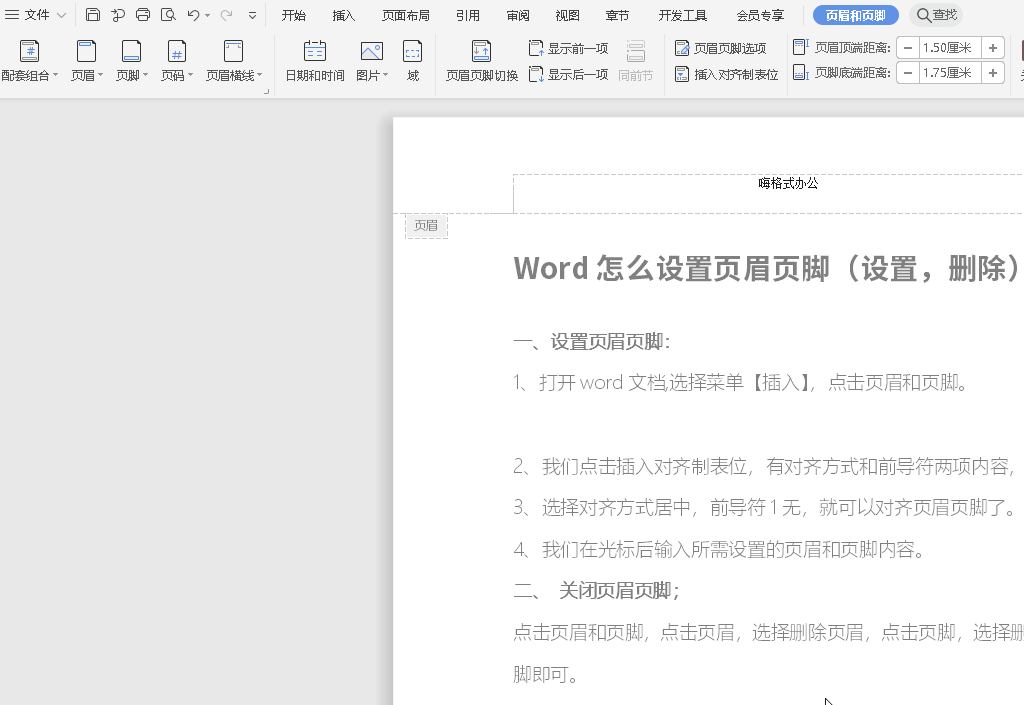 一、设置页眉页脚