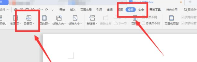2、在顶部菜单中,点击“章节”,点击“目录页”。