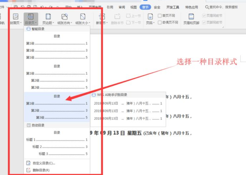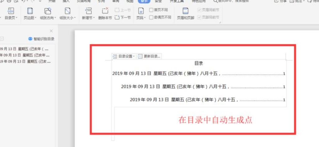 4、然后就能看到页面中已经插入了该样式的目录,同时自动生成了目录的点。