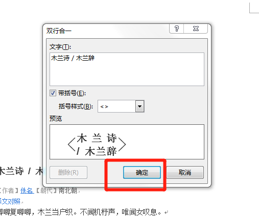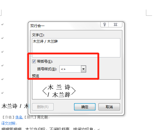 总结:1、在电脑在桌面中,找到并打开需要设置的Word文档。2、选中需要设置的文字,在开始界面中的顶部工具栏中,找到中文版式功能。3、点击中文版式旁边的小倒三角。4、在弹出的选项中,找到里面的双行合一并点击。5、在弹出窗口中,根据需求设置带括号及括号样式。6、设置完成后,点击确定即可。