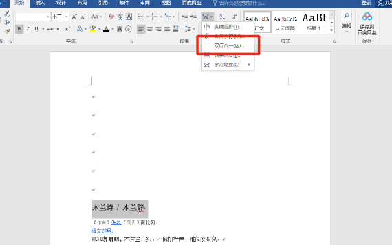 4、在弹出的选项中,找到里面的双行合一并点击。