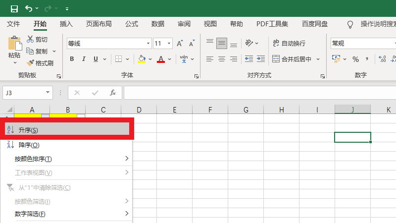 在展开的筛选中,选择升序即可。