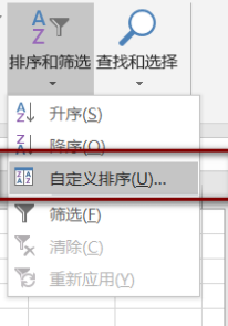 3、在弹出的选项中点击“自定义排序”。