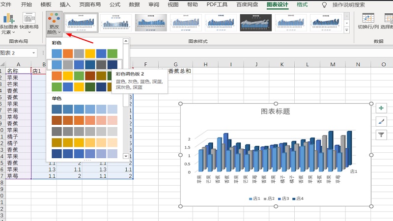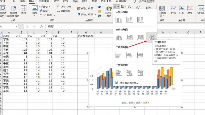点击插入,下拉柱形图标,选择所需要的柱形图。