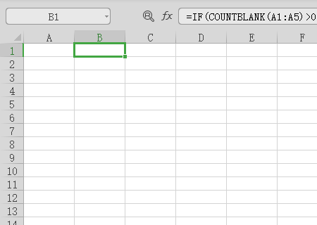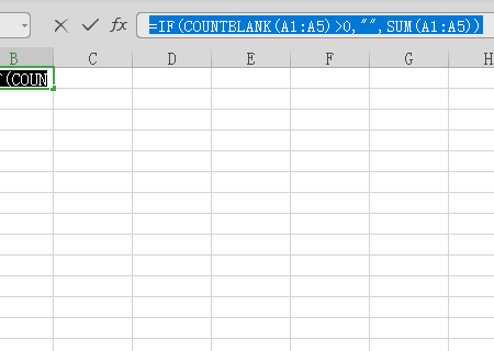 3、在该界面中,公示栏中输入无数据输入时显示空白,而不是0,在输入数据时即使公式结果为0也会显示0的公式=IF(COUNTBLANK(A1:A5)0,,SUM(A1:A5))。