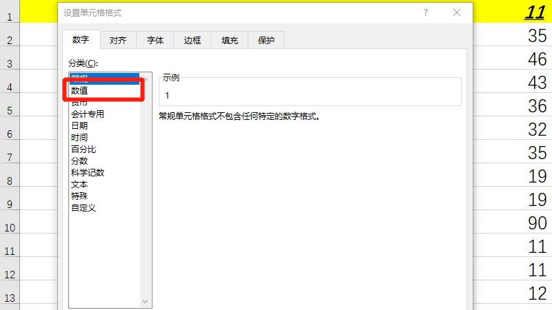在展开的选项中,点击数值。