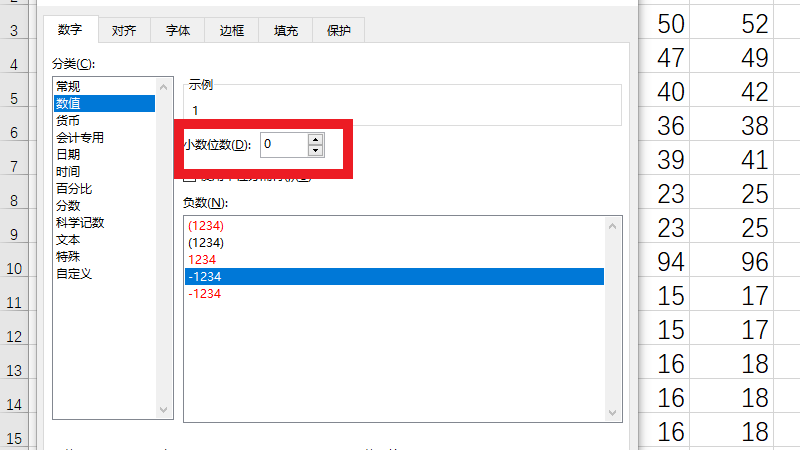 在展开的界面中,设置小数位数为0即可。