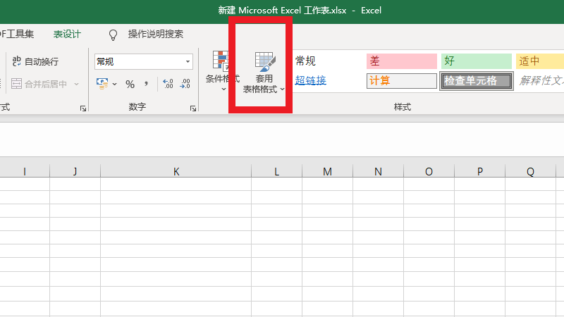 在展开的界面中,即可找到套用表格格式。