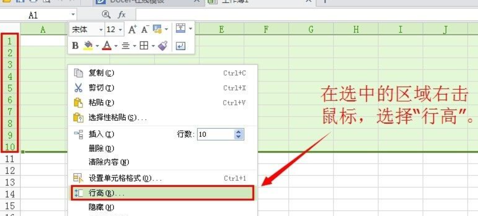 1、选择需要改动的单元格所在行的最左侧的序列号,然后右击鼠标,在菜单中选择“行高”。图片:
