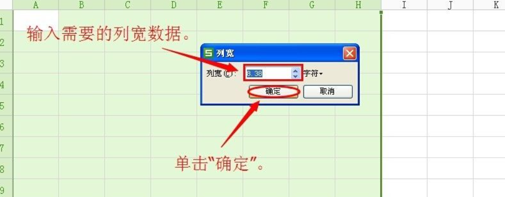 4、在弹出的窗口上输入需要的列宽数据,然后单击“确定”就可以了。