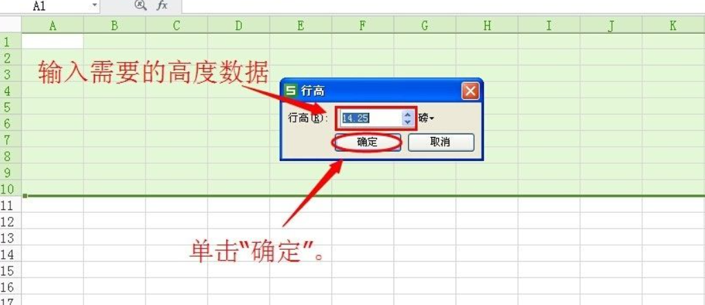 2、在弹出的窗口上输入需要的行高数据,然后单击“确定”。