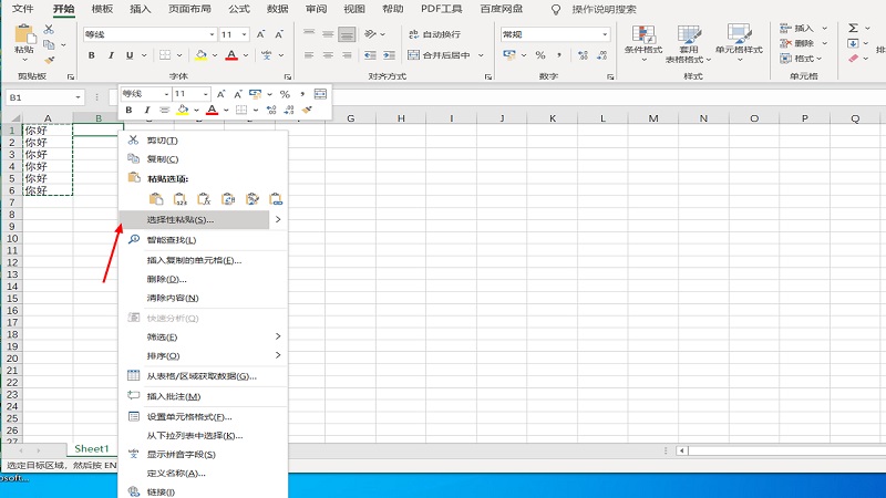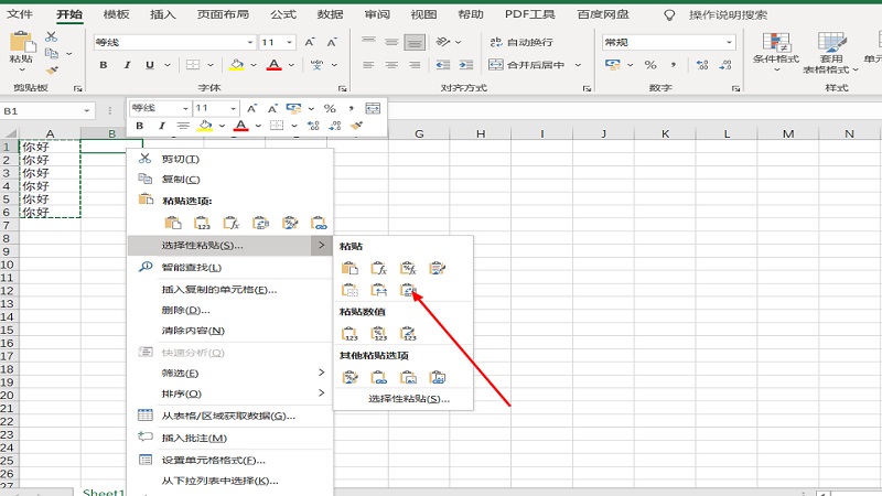 选取所需要的列数,右击选择黏贴性。