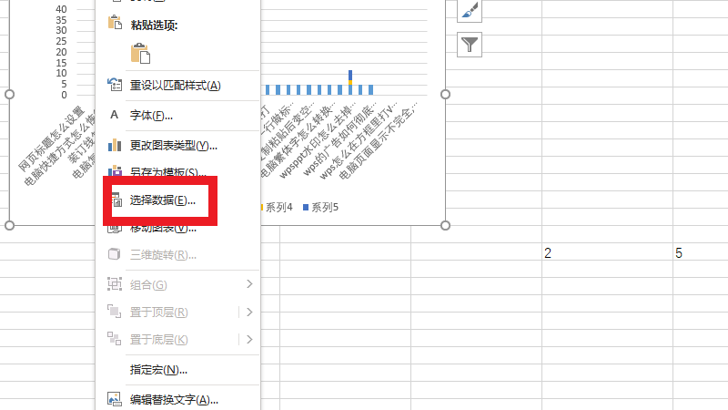 在表格右击界面中,点击选择数据。