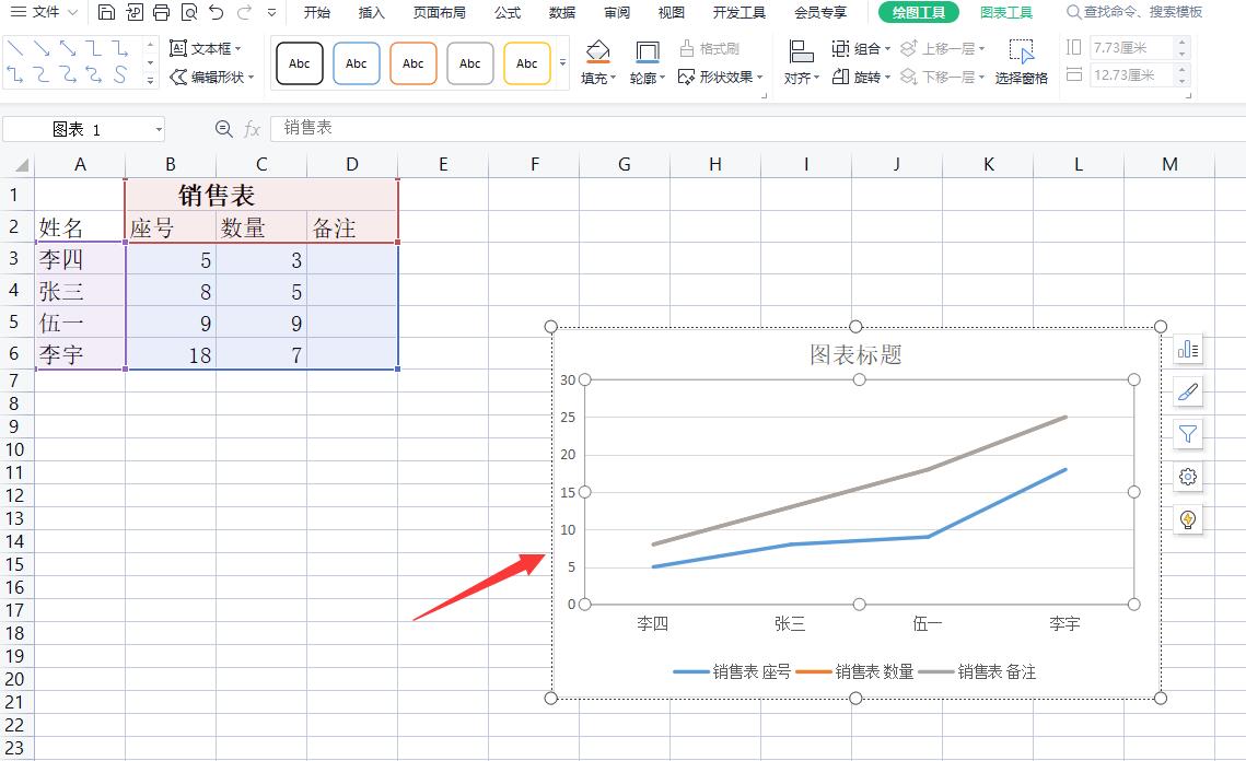 选择折线选项,即可看到生成的折线图效果。