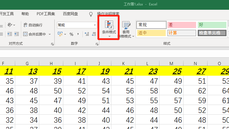 在Excel表格开始选项下,点击条件格式。