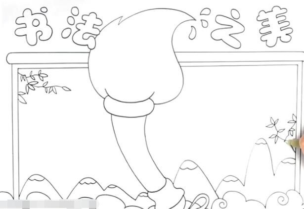 5、在空白边框里画上整齐的文字栏,简单手抄报就画好了。