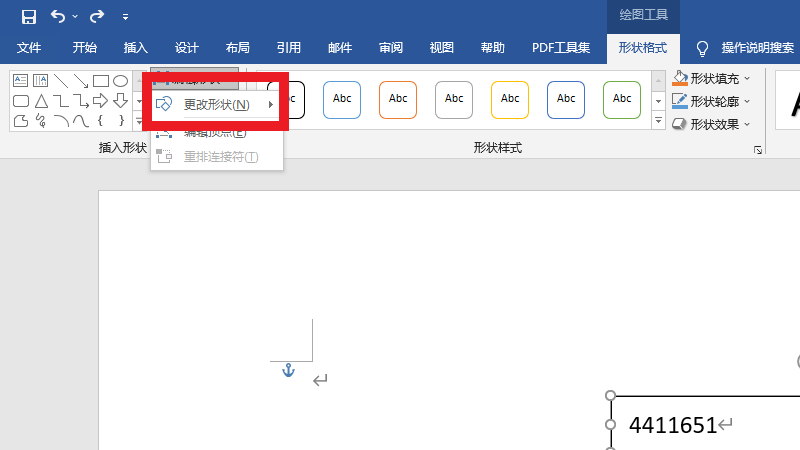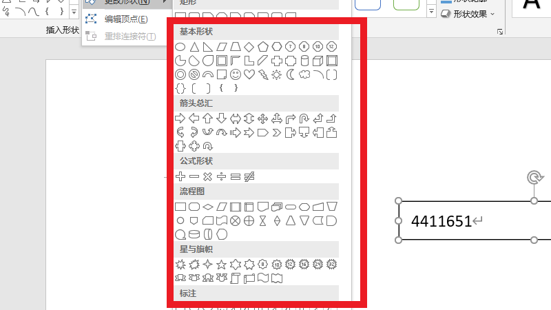 在编辑形状界面中,点击更改形状。