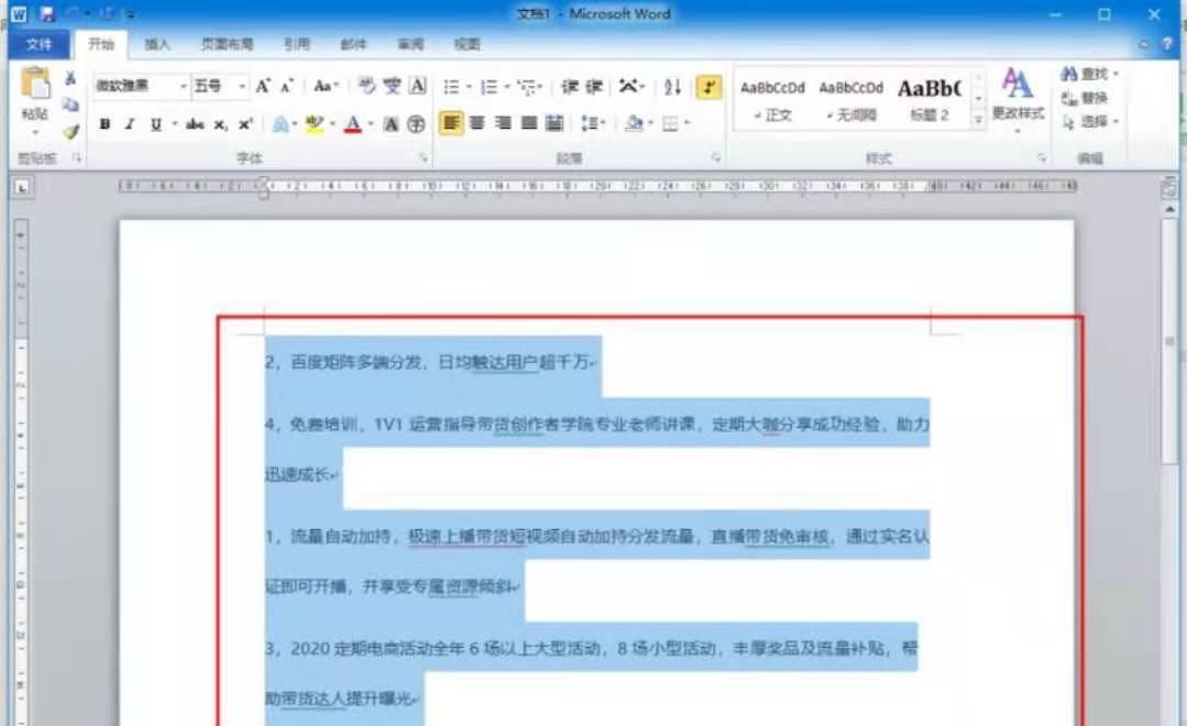 2、接着ctrl+a,或者移动鼠标全选文档。