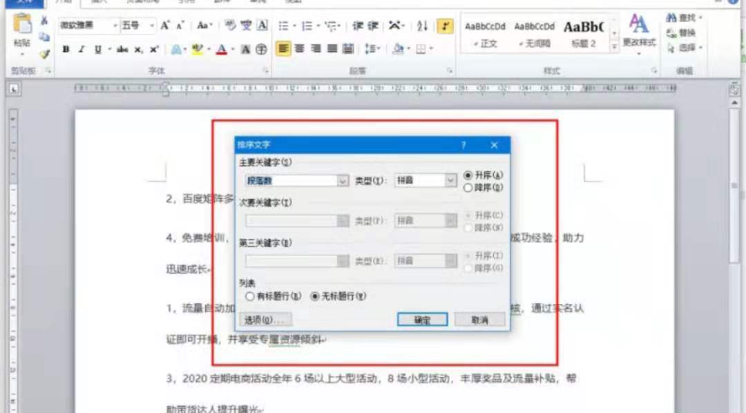 4、然后单击排序打开一个对话框。