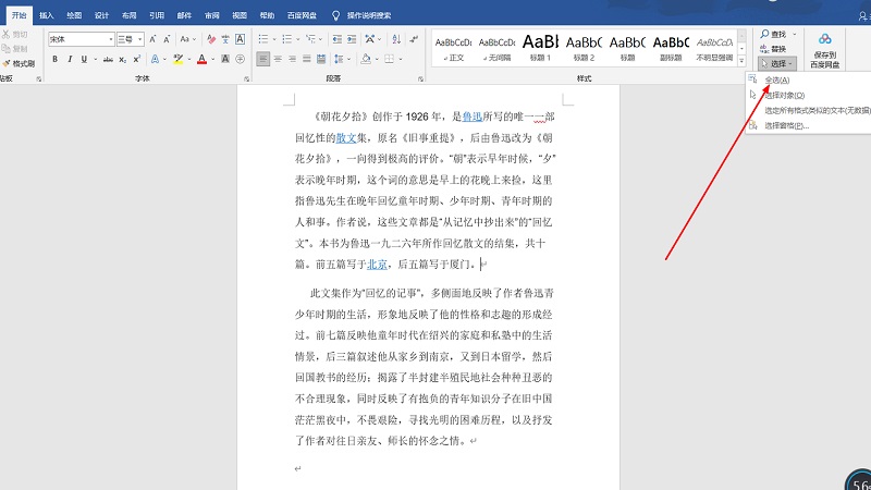 从文中开头拉到结尾即可