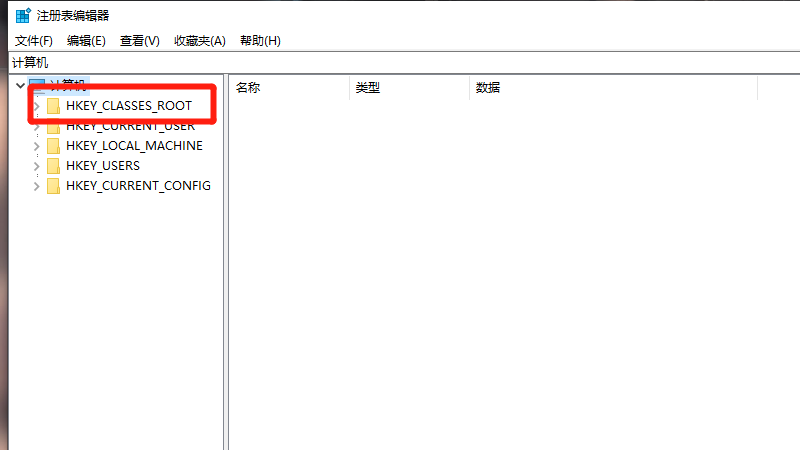 在展开的界面中,点击HKEY_CLASSES_ROOT目录。