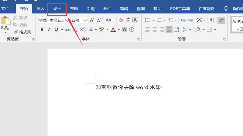 在Word文档界面中,点击设计,在导航栏右侧找到水印并点击。