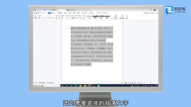 选定需要竖排的段落文字。