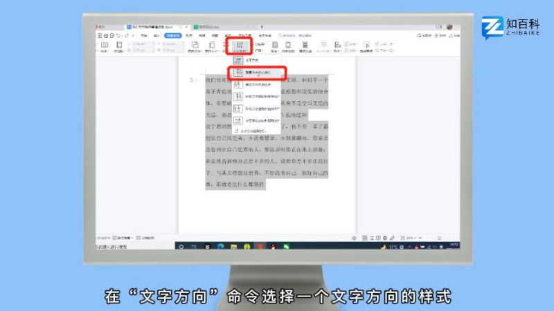 在文字方向命令选择一个文字方向的样式。