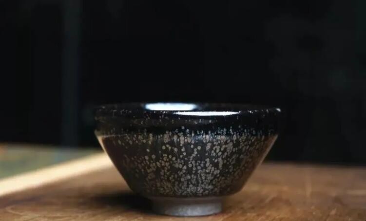1、黑釉:就是纯黑色的釉,表面没有斑纹,是建窑产品中比较经典的一种釉色。也叫做“绀黑釉”或者是“乌金釉”。“绀黑”这个词在蔡襄的《茶录》里曾经有这样的记载:“建安所造者,绀黑,纹如兔毫。”