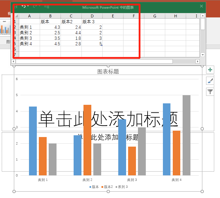 5、插入图表后,在弹出的Excel表格中,将其修改为需要的数据。