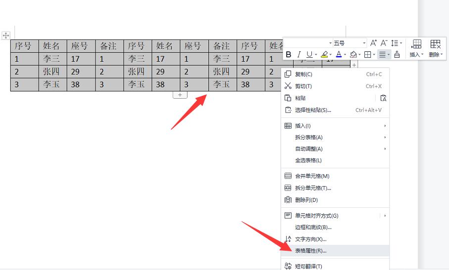 - 2输入内容右键表格属性